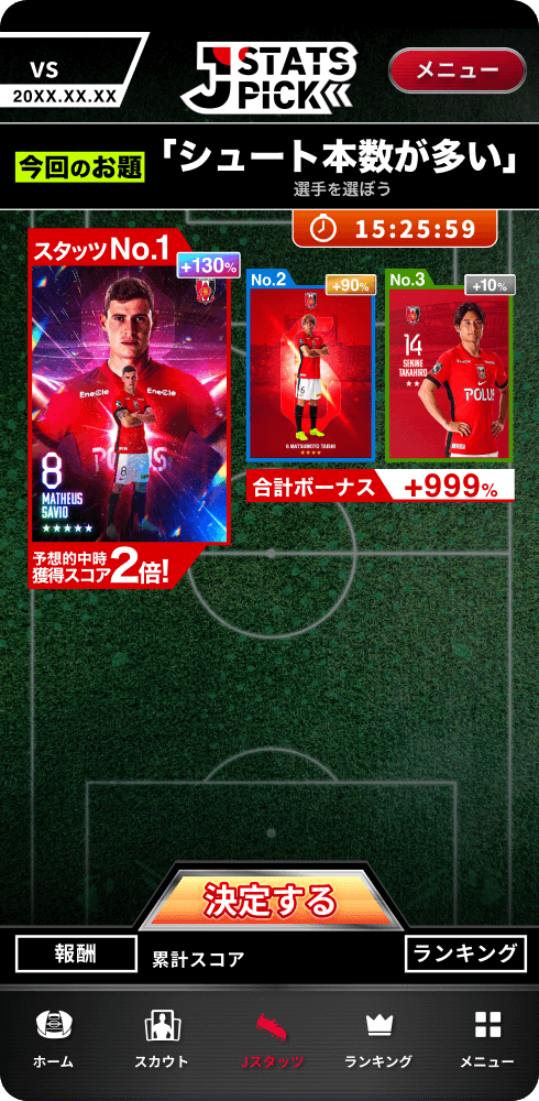 試合ごとに出題されるテーマに沿って、活躍しそうな選手を予想する「Jスタッツピック」